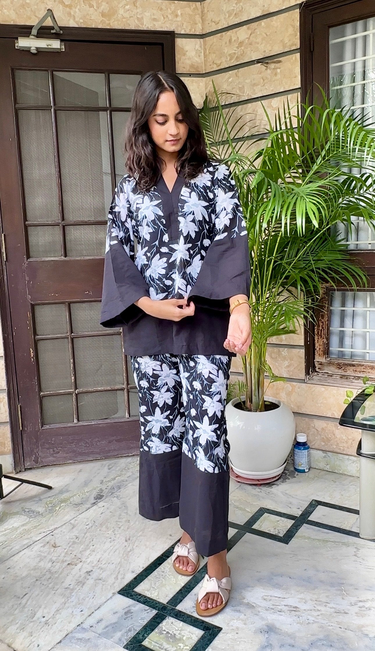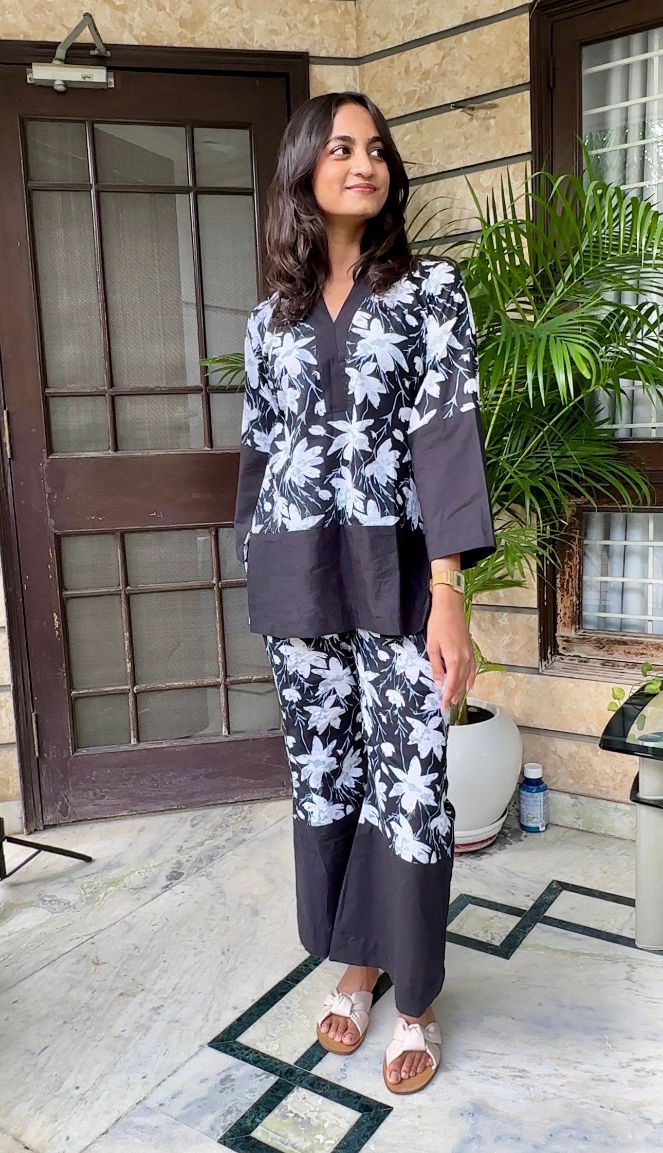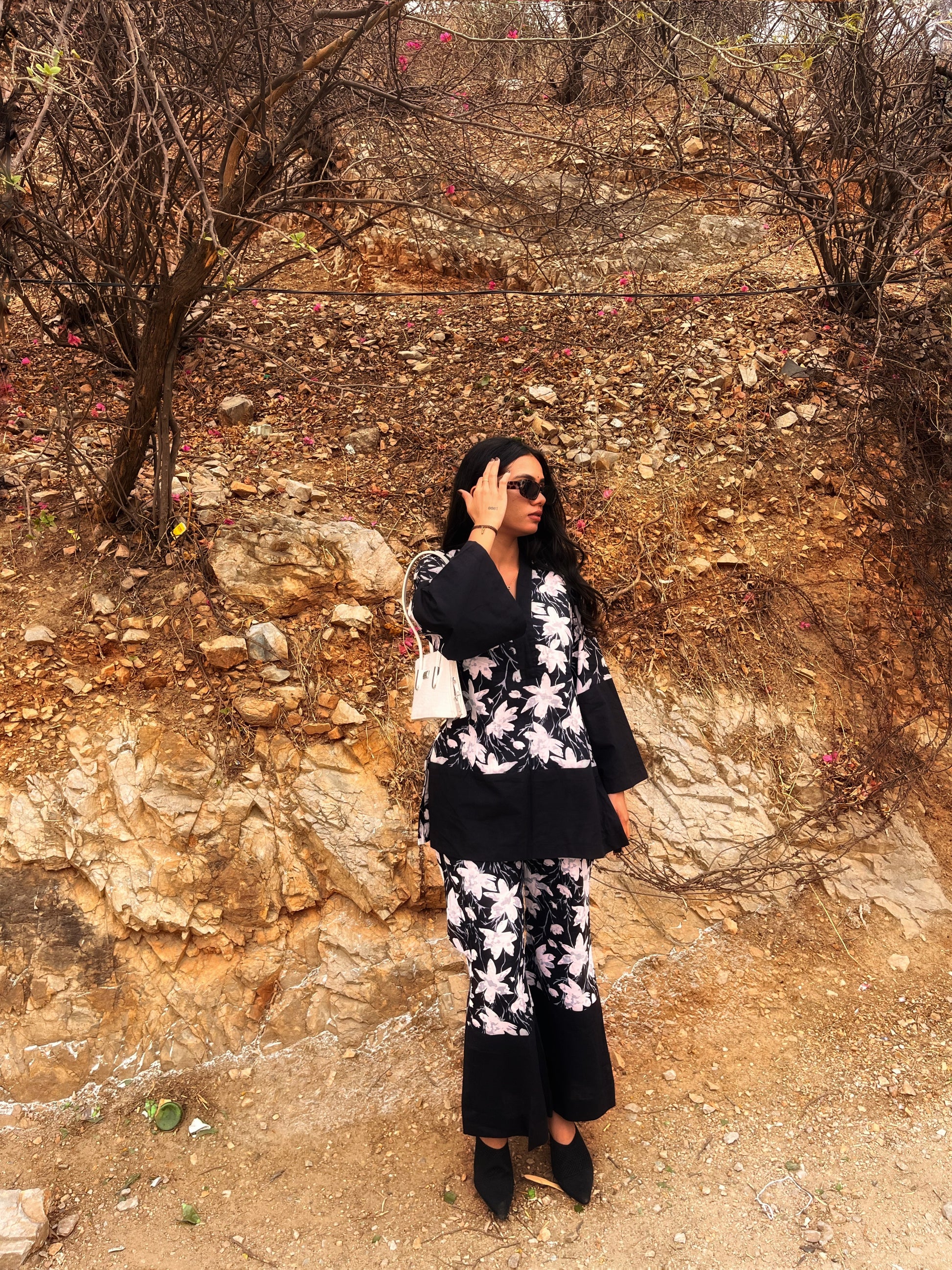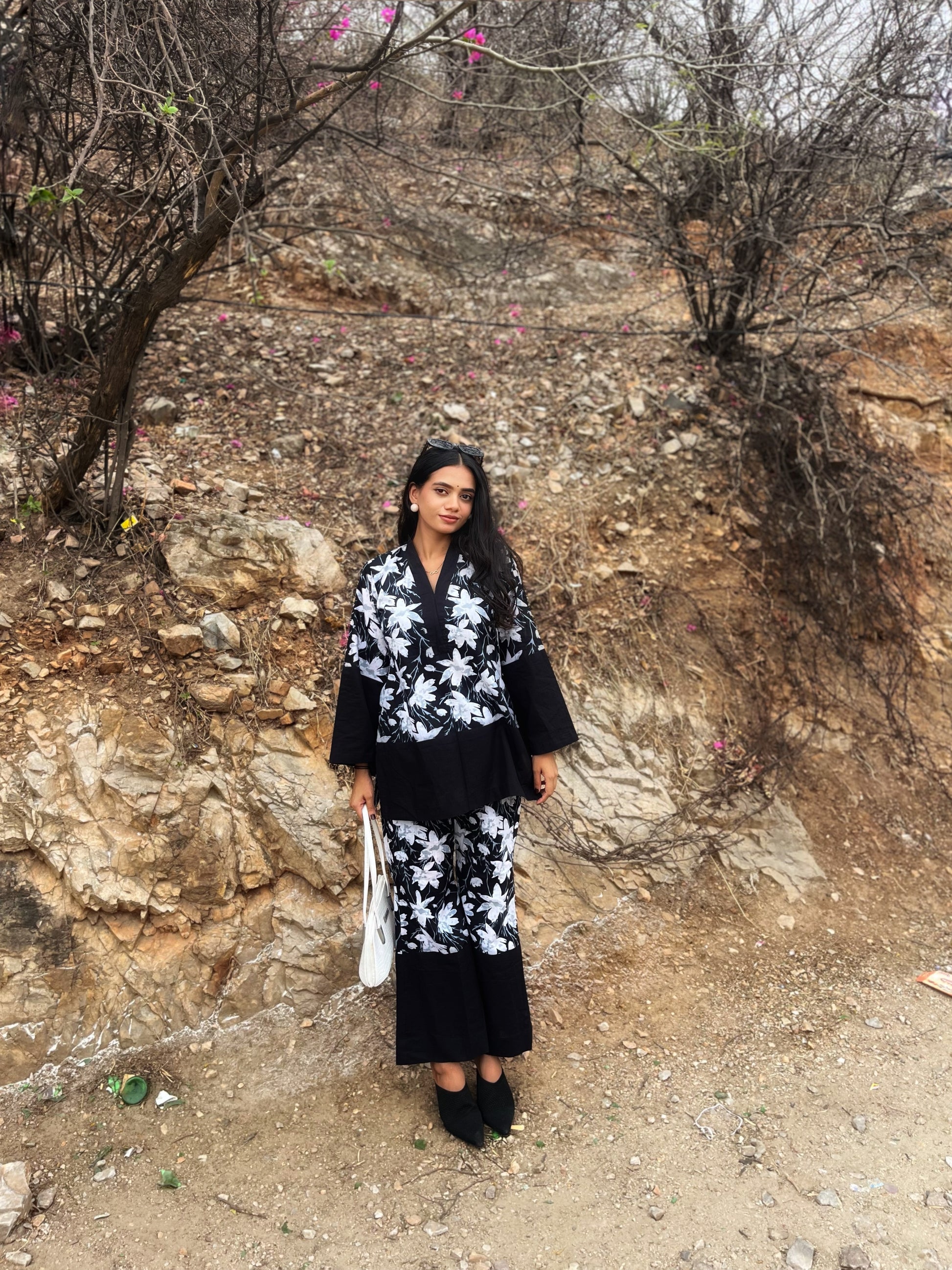 Step into effortless elegance with दिशा's Blossom Flower Black Coord Set – a striking blend of bold black and delicate florals that redefines everyday style. Designed in premium quality cotton fabric, we’ve beautifully combined solid black cotton with a touch of blossom-printed fabric to create a look that’s both timeless and trendy.